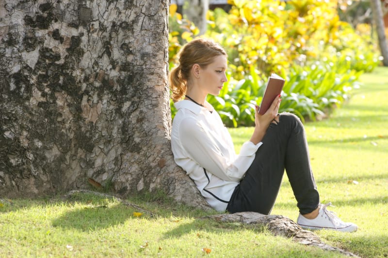 Frau-mit-Wecker-hat-verschlafeniStock.com/AntonioGuillem3. Alina ________________________ in the park when she heard someone call her name.