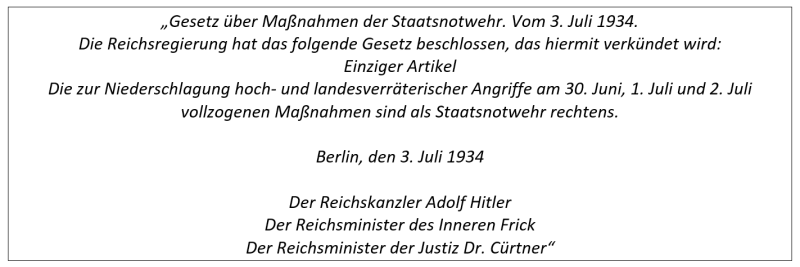 Das „Staatsnotwehrgesetz“, dessen Text im Folgenden abgedruckt ist, wurde am 3. Juli 1934 erlassen.