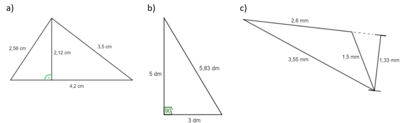 Berechne jeweils den Flächeninhalt und den Umfang der gegebenen Dreiecke, ohne zu runden.