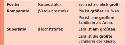 Die meisten Adjektive können Vergleichsformen bilden und gesteigert werden.