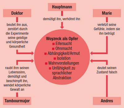 Das folgende Beispiel zeigt eine Mindmap der Personenkonstellation in Georg Büchners Woyzeck