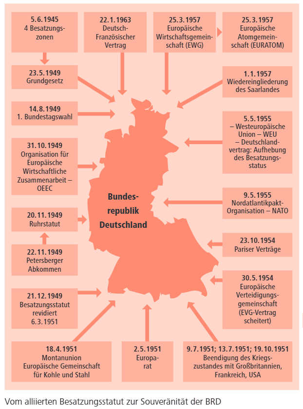 Der Deutschlandvertrag und seine leichten Änderungen in den Pariser Verträgen (1954) beendeten das Besatzungsregime in Westdeutschland und schufen die Voraussetzung für einen Beitritt zur NATO und die Gründung der Bundeswehr.