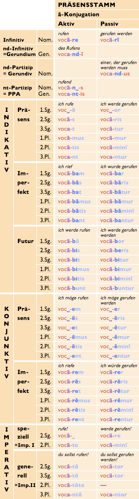 • in der 1.Sg. Indikativ Präsens: voc_-ō; ebenso im Passiv: voc_or;