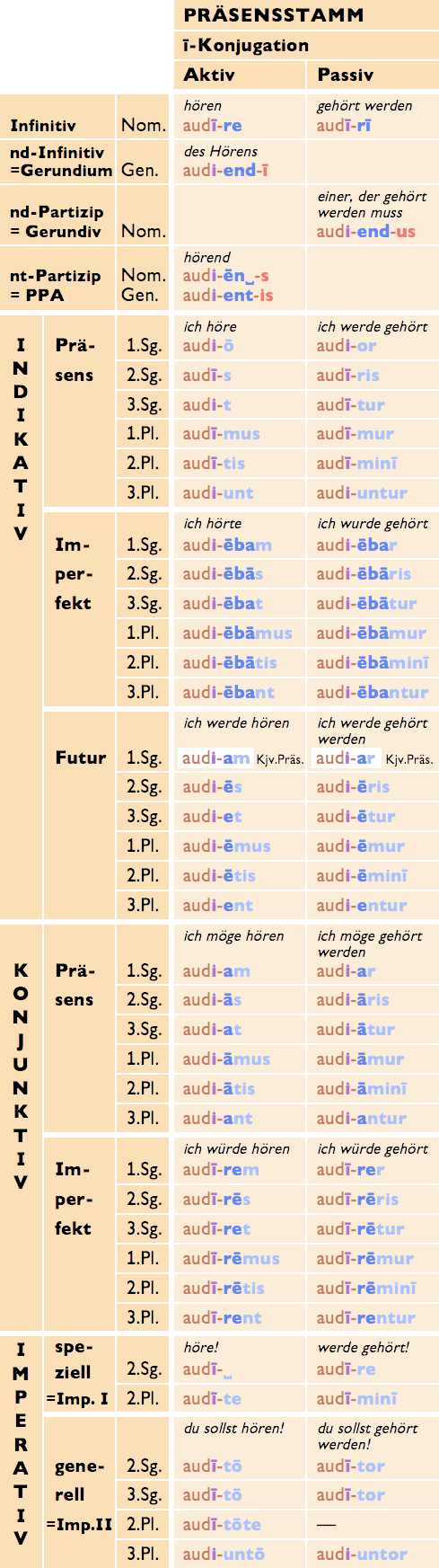 (2) In der ī-Konjugation dient die 1.Sg. Konjunktiv Präsens zugleich als 1.Sg. Futur: