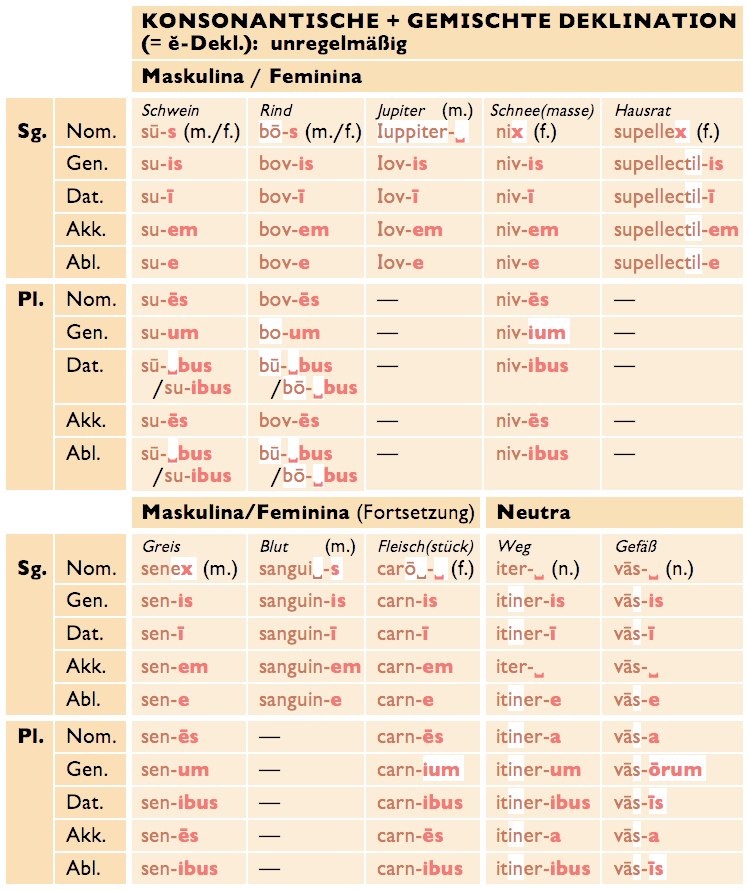 Andere Bezeichnungen: konsonantische und gemischte Typen der 3. Deklination;