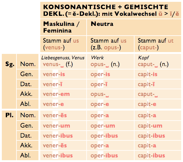 ÷ Neutrum: opus-_ n. Werk, Gen. oper-is, Akk. = Nom. (siehe Tabelle oben), und viele andere;