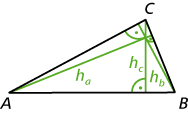 - Die Höhen ha, hb und hc eines Dreiecks sind die Senkrechten oder Lote von einem Eckpunkt auf die gegenüberliegende Seite.