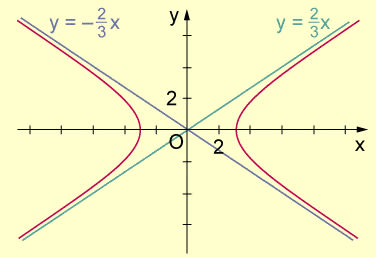 \(\displaystyle \frac{x^2}{a^2} - \frac{y^2}{b^2} = 1 \ \ \Leftrightarrow \ \ y = \pm \frac b a x\cdot \sqrt{1 - \frac{a^2}{x^2}}\)