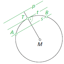 Eine Passante ist eine Gerade, die mit einem gegebenen Kreis keinen gemeinsamen Punkt hat (ihn also „passiert“, ohne ihn zu berühren). In der Skizze ist die Gerade p eine Passante. t ist eine Tangente (genau ein Berührpunkt), s ist eine Sekante (zwei Schnittpunkte). Schlagworte #Geraden #Kreis