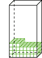 Das Volumen des Quaders kann man bestimmen, wenn man ihn in Gedanken Schicht für Schicht mit Einheitswürfeln ausfüllt. Auf der Grundfläche passen G = a · b Würfel in eine Schicht, und der Quader fasst h Schichten übereinander. Insgesamt sind es G · h Einheitswürfel, also
