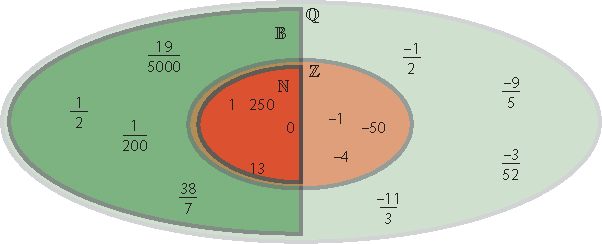 In der Menge \(\mathbb{Q}\) sind die Mengen \(\mathbb N\), \(\mathbb B\) und \(\mathbb Z\) der natürlichen, ganzen und Bruchenzahlen enthalten.