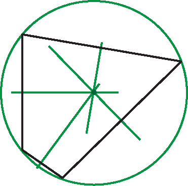 Ein Sehnenviereck ist ein Viereck, um das man einen Umkreis zeichnen kann. Dies ist genau dann der Fall, wenn sich die vier Mittelsenkrechten in einem Punkt schneiden, der dann automatisch der Umkreismittelpunkt ist. Der Name „Sehnenviereck“ kommt daher, dass alle vier Seiten Sehnen des Umkreises sind.