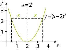 Der Graph einer Funktion f ist achsensymmetisch zur vertikalen Geraden x = a, wenn für alle \(x \in D_f\) gilt: f(a – x) = f(a + x).