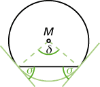 - Der Mittelpunktswinkel \(\delta\) ist doppelt so groß wie der auf der gleichen Seite der Sehne liegende Umfangswinkel \(\varphi\).