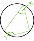 - Die Umfangswinkel \(\varphi_1\) und \(\varphi_2\) auf einem Bogen und dem Restbogen ergänzen sich zu 180°.