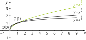 Sie sind die Umkehrfunktionen der Potenzfunktionen mit natürlichen Exponenten, sofern man diese auf den Definitionsbereich auf \(D_f = \mathbb R_0^+\) einschränkt: