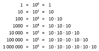 Zehnerpotenzen tauchen auch bei der technischen bzw. wissenschaftlichen Darstellung von Zahlen auf, z. B. „354,9 · 10–6“.