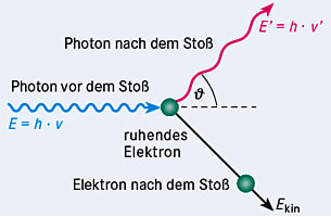 Trifft ein Photon auf ein ruhendes Elektron, gibt es analog zum klassischen elastischen Stoß zweier Teilchen Energie an das Elektron ab, die dieses als kinetische Energie Ekin aufnimmt: