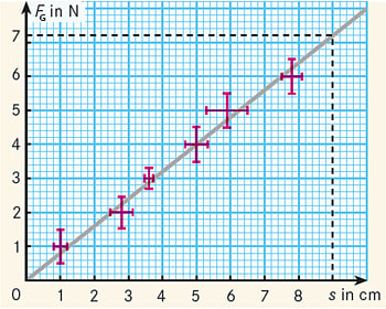 Viele mathematische Methoden der Fehlerrechnung sind recht kompliziert, deswegen benutzt man auch gerne grafische Verfahren. Beispielsweise wird bei einem vermuteten linearen Zusammenhang zwischen zwei Messgrößen (etwa die Gewichtskraft FG von Eisenstäben der Länge s) anstelle einer linearen Regression einfach eine Ausgleichsgerade gezeichnet, und zwar so, dass der Abstand zu den einzelnen Messpunkten so gering wie möglich ist (Abb.).