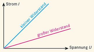 Im Strom-Spannungs-Diagramm sind man also eine Gerade mit der Steigung R.