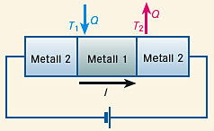 Beim Peltier-Effekt (nach Jean Peltier) wird elektrische Energie an der Kontaktstelle zweier verschiedener Leiter, durch die ein elektrischer Strom fließt, in Wärmeenergie umgewandelt. Diese Wärmeenergie ist nicht etwa am Ohm’schen Widerstand der Leiter erzeugte Joule’sche Wärme, sondern ein zusätzlicher Beitrag. Je nach Stromrichtung wird durch den Peltier-Effekt die Kontaktstelle erwärmt (Abgabe einer Wärmemenge Q) oder abgekühlt (Aufnahme einer Wärmemenge Q).